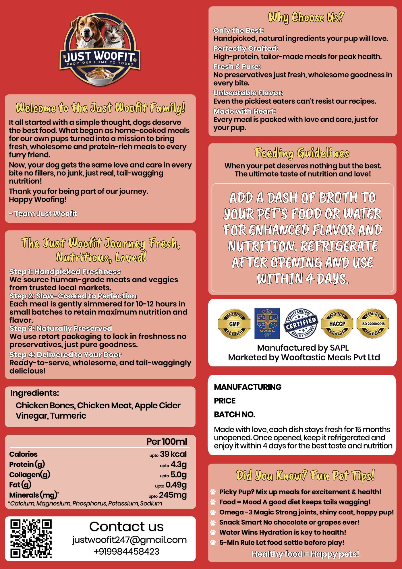 Crafted with care using locally sourced ingredients under strict safety standards. We’re proud to offer a broth that’s made in India for Indian pets.