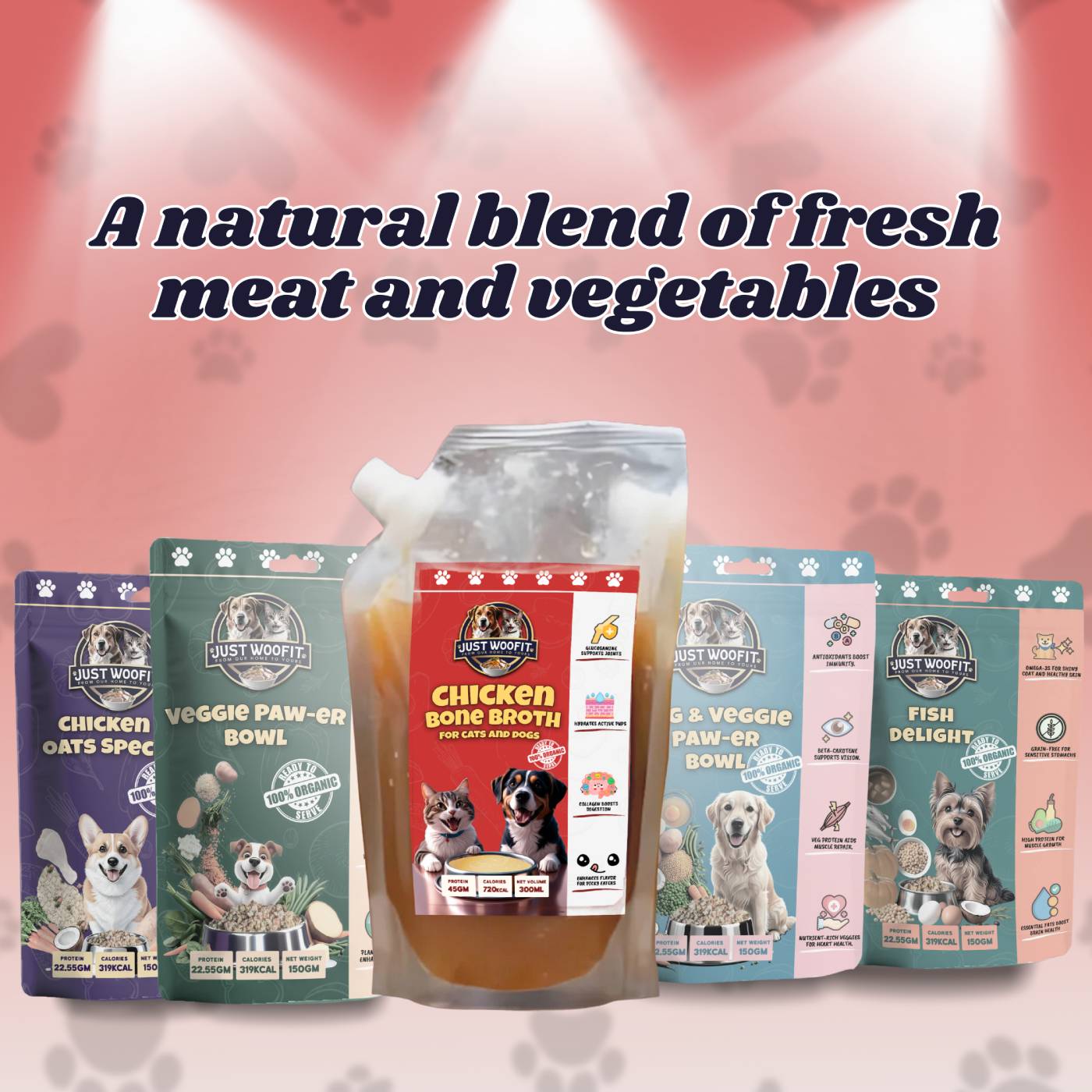 Just Woofit Veggie Paw-er is a nourishing, plant-based dog food made with brown rice, sweet potatoes, cottage cheese, carrots, green peas, and vegetable broth. Enhanced with flaxseed oil, sunflower oil, calcium, taurine, and essential vitamins & minerals, it’s perfect for adult dogs needing gentle, meat-free nutrition.